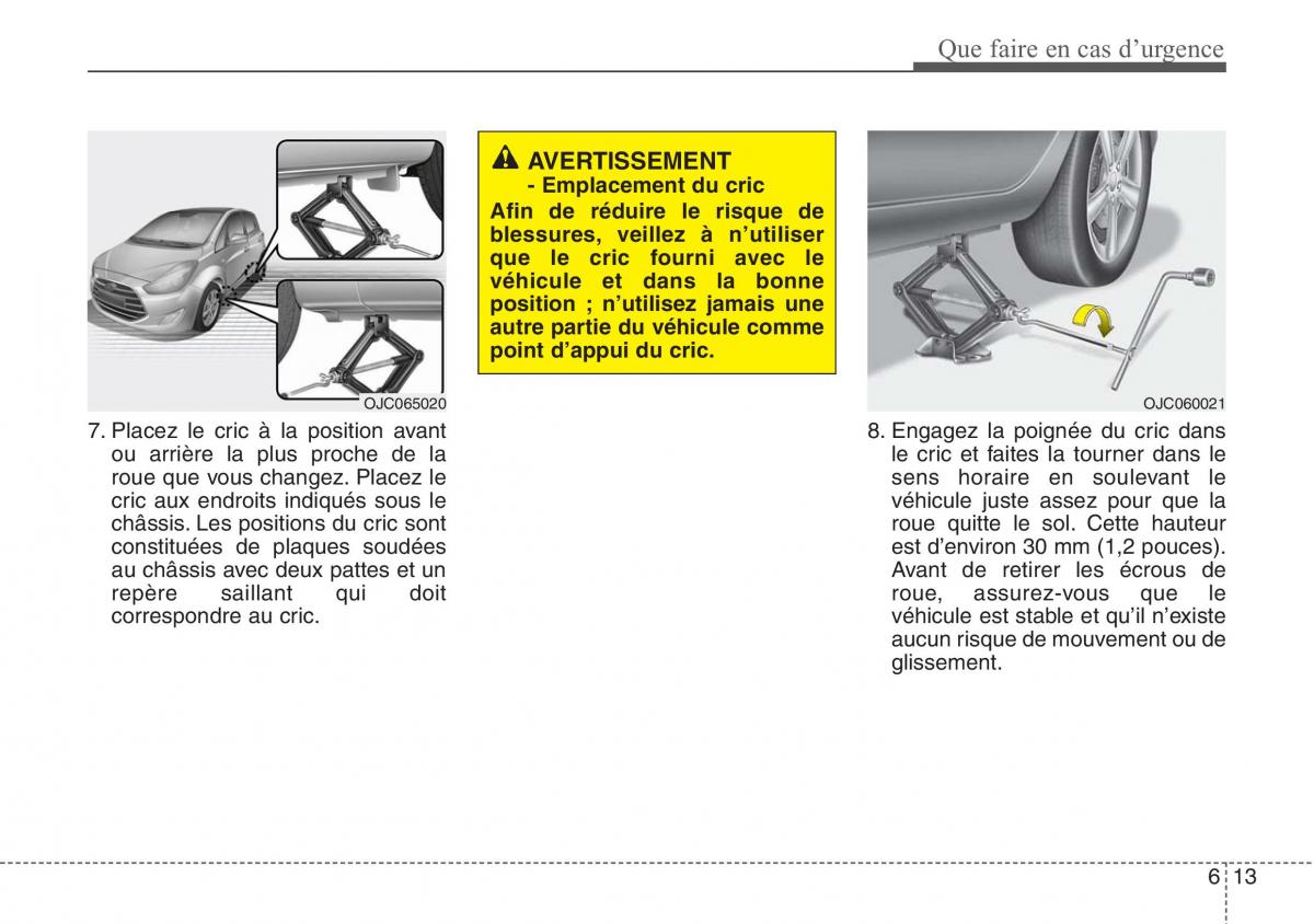 correspondre au cric. véhicule est stable et qu’il n’existe