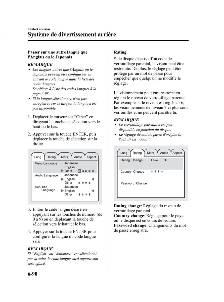 3. Entrer le code langue désiré en Rating change: Réglage du niveau de