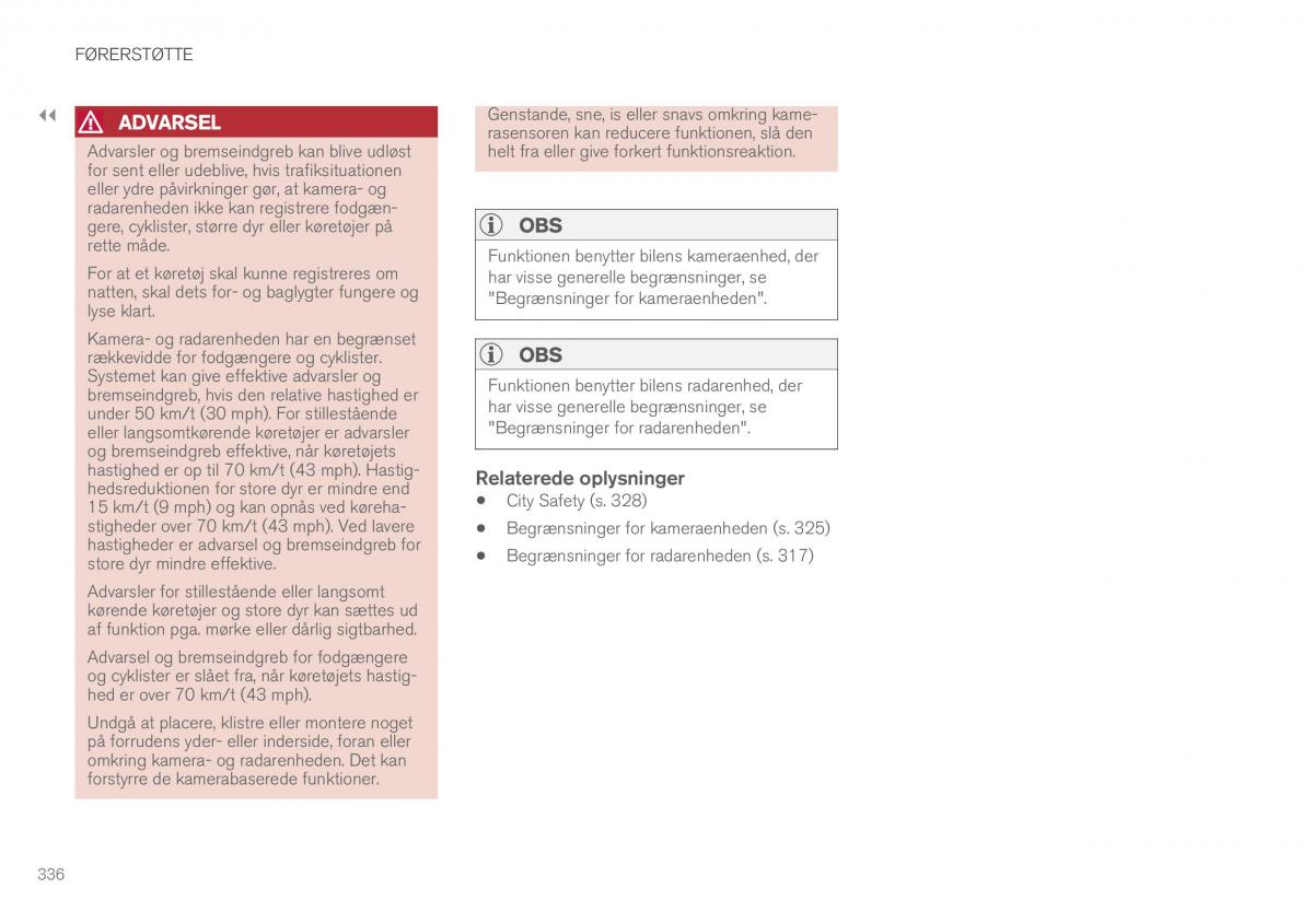 under 50 km/t (30 mph). For stillestående"Begrænsninger for radarenheden".