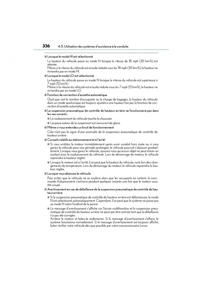 336 4-5. Utilisation des systèmes d’assistance à la conduite