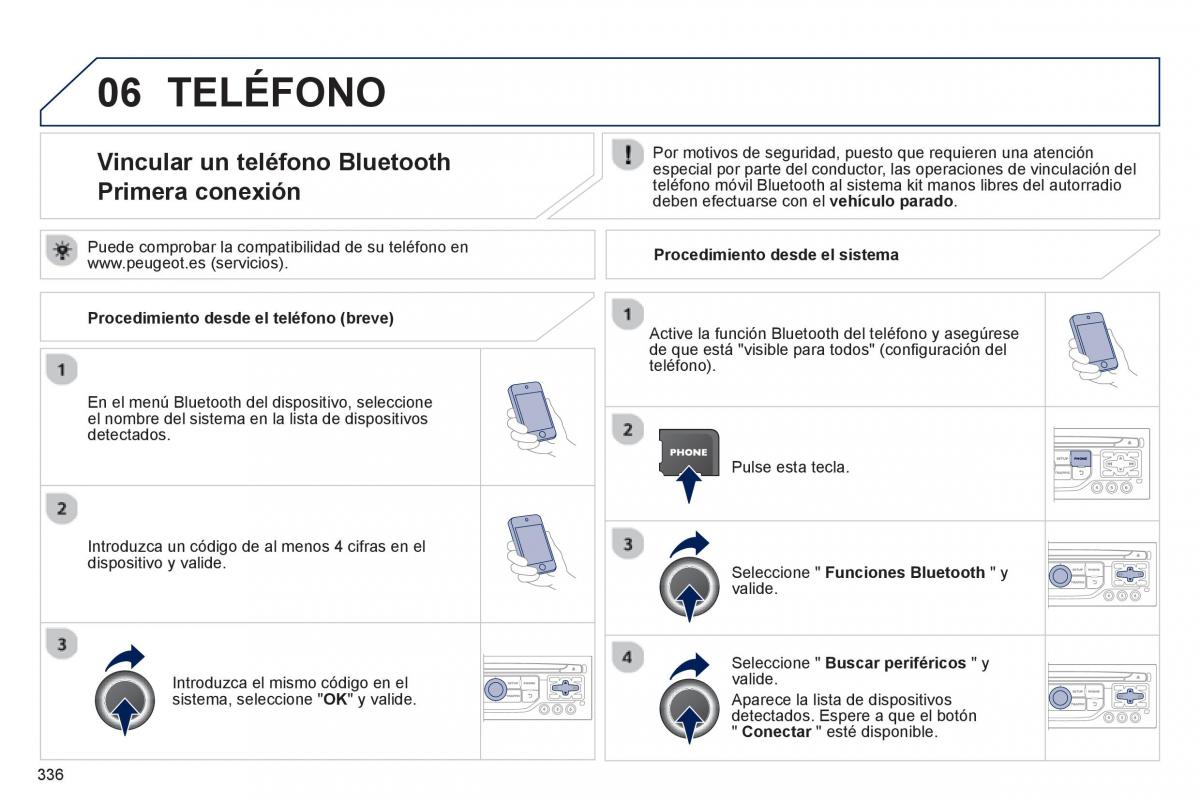 Primera conexión teléfono móvil Bluetooth al sistema kit manos libres del autorradio