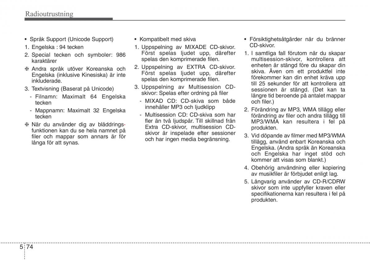3. Textvisning (Baserat på Unicode)3. Uppspelning av Multisession CD-