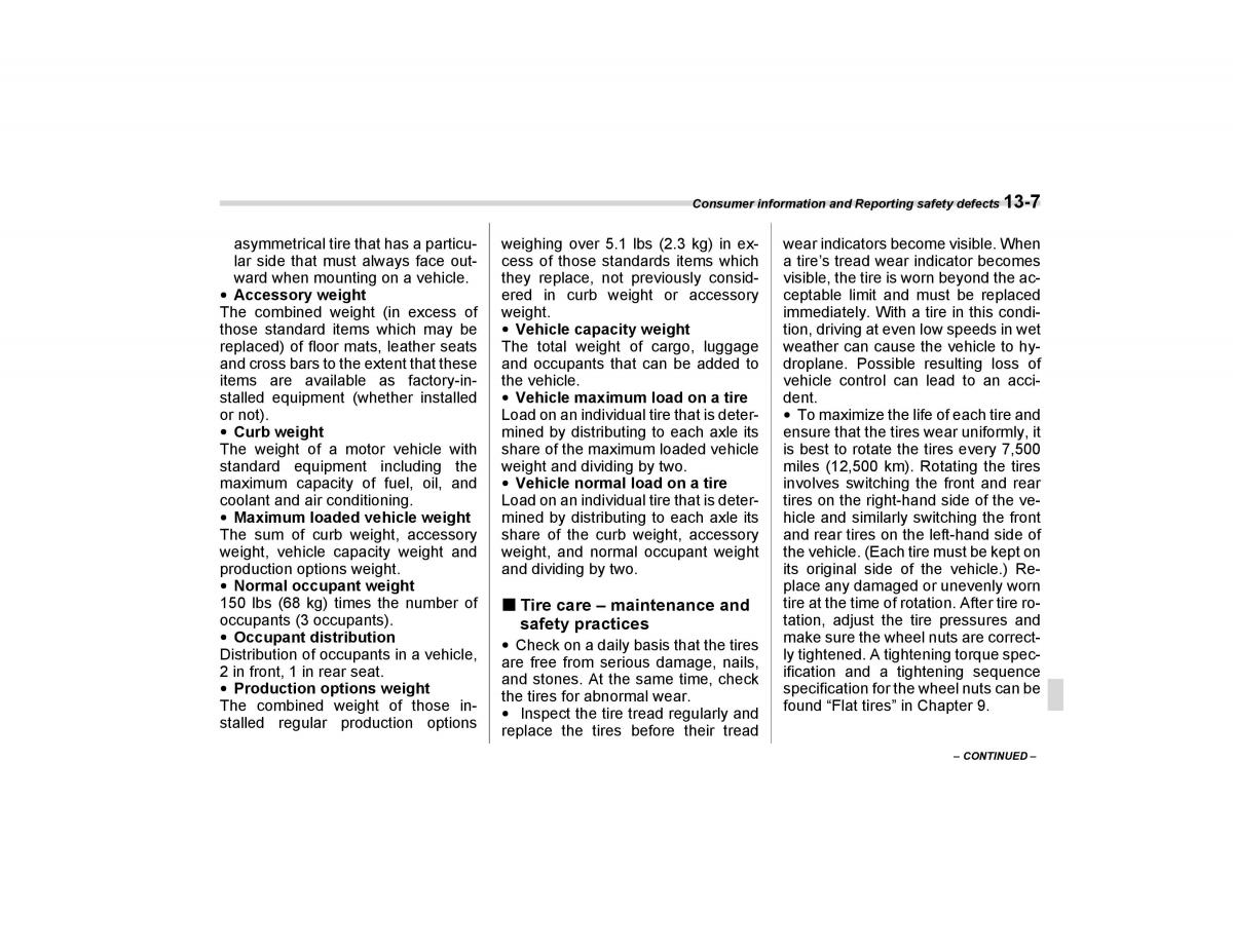 standard equipment including theweight and dividing by two. miles (12,500 km). Rotating the tires