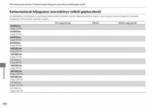 Adott távolság vagy idő után elvégzendő szervizművelet - km X 100020406080 100 120 140 160 180 200