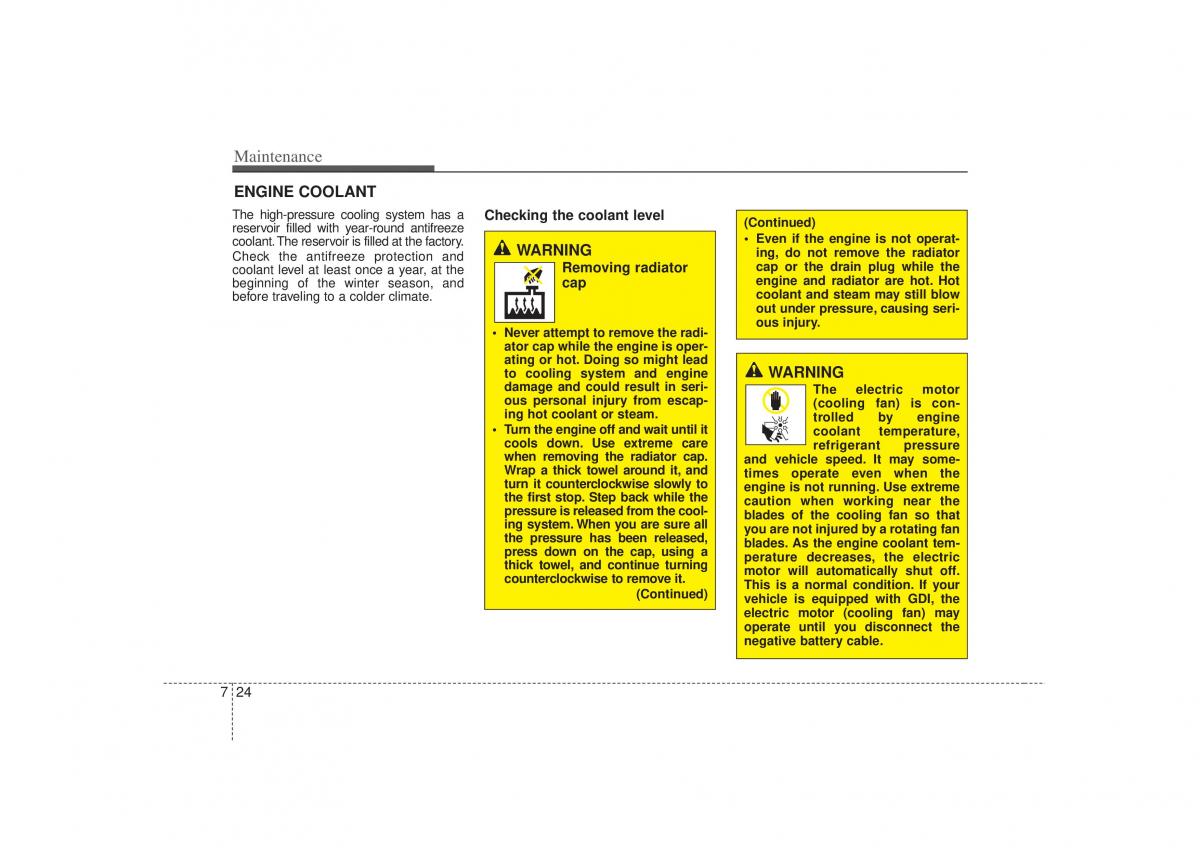 The high-pressure cooling system has a Checking the coolant level (Continued)