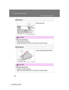 from owners manual to the vehicle Toyota Auris Hybrid, year of production 2007 - 2012: