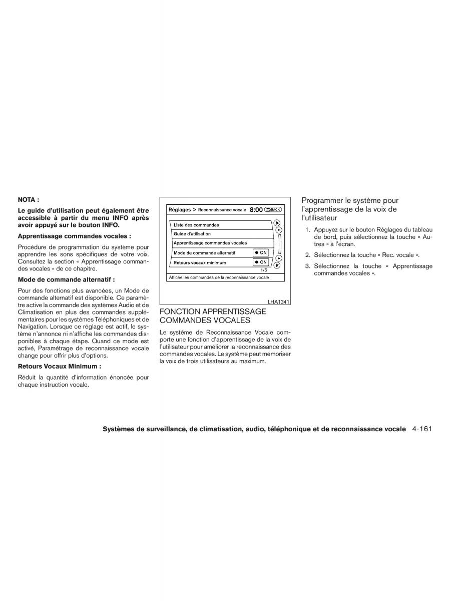 Apprentissage commandes vocales : de bord, puis sélectionnez la touche « Au-