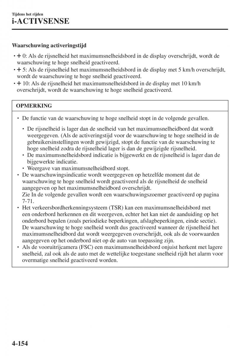 0: Als de rijsnelheid het maximumsnelheidsbord in de display overschrijdt, wordt de