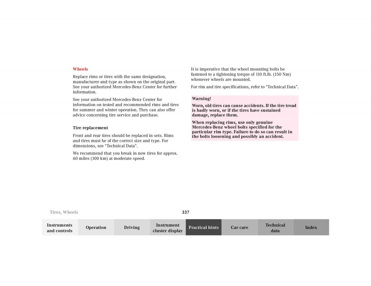 See your authorized Mercedes-Benz Center for further For rim and tire specifications, refer to “Technical Data”.
