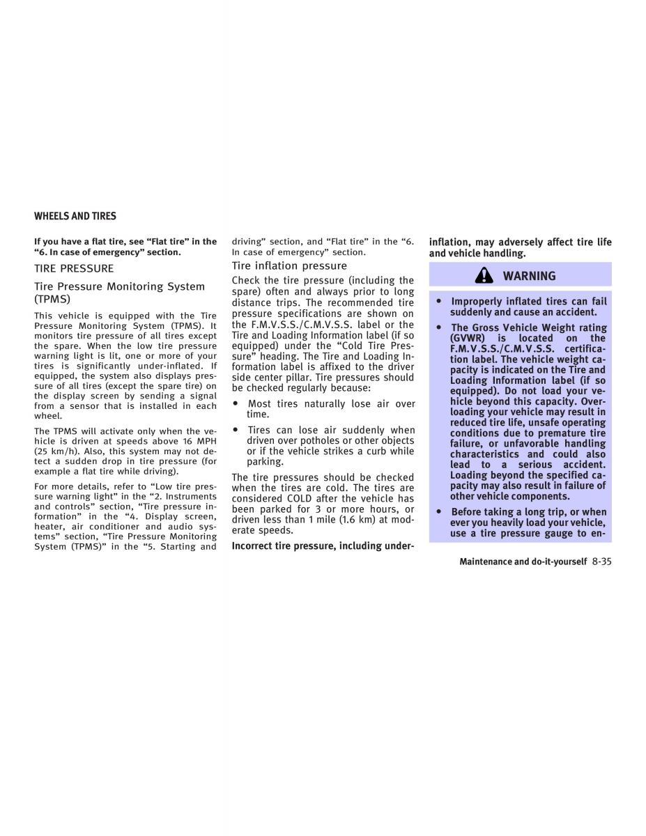 System (TPMS)” in the “5. Starting and Incorrect tire pressure, including under-