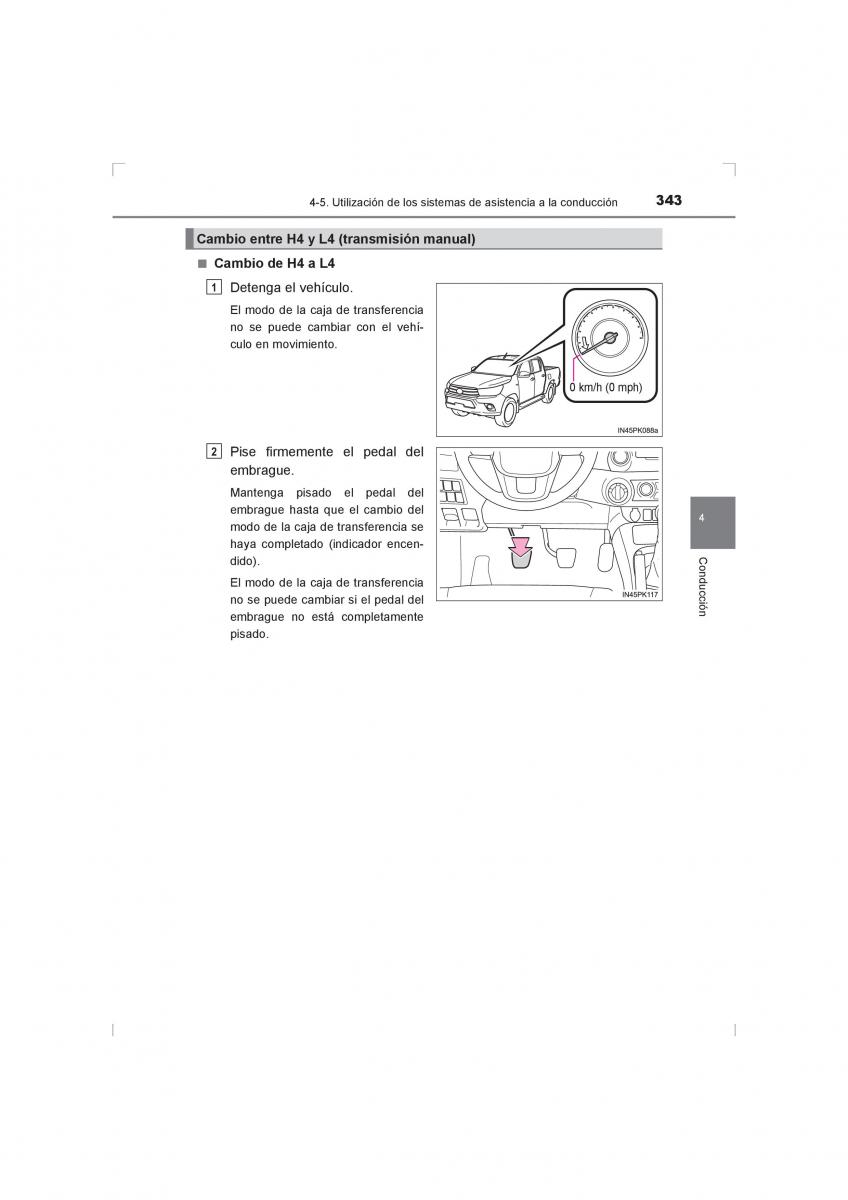 Cambio entre H4 y L4 (transmisión manual)