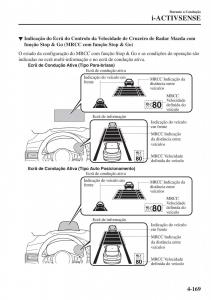 Indicação do Ecrã do Controlo da Velocidade de Cruzeiro de Radar Mazda com