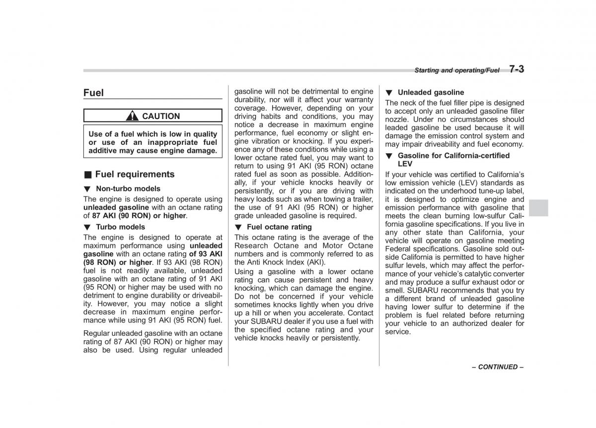 (95 RON) or higher may be used with noknocking, which can damage the engine.smell. SUBARU recommends that you try