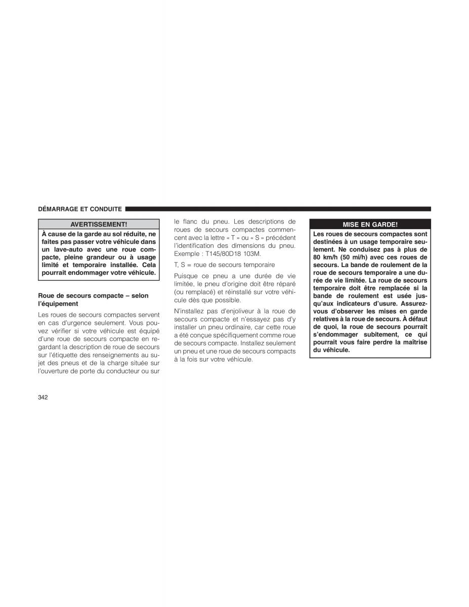 Les roues de secours compactes serventN’installez pas d’enjoliveur à la roue devous d’observer les mises en garde