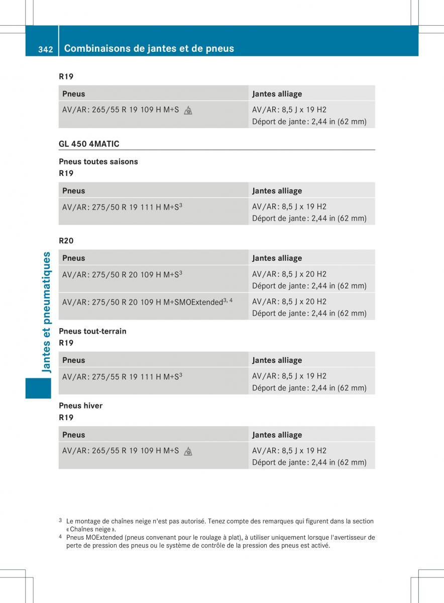 AV/AR : 265/55 R 19 109 H M+S i AV/AR : 8,5 J x 19 H2