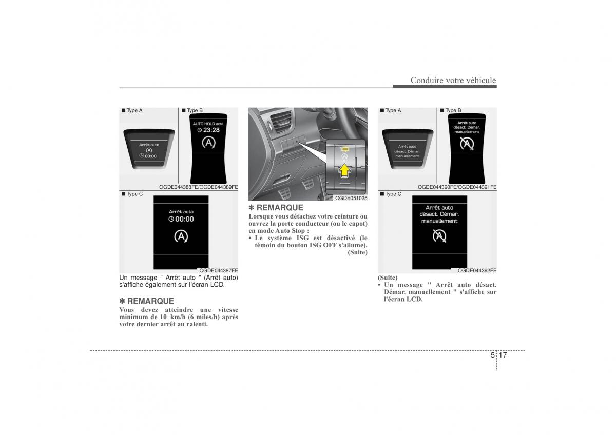 • Le système ISG est désactivé (le