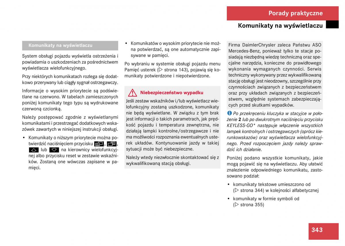 Komunikaty na wyœwietlaczu Komunikatów o wysokim priorytecie nie mo¿-Firma DaimlerChrysler zaleca Pañstwu ASO