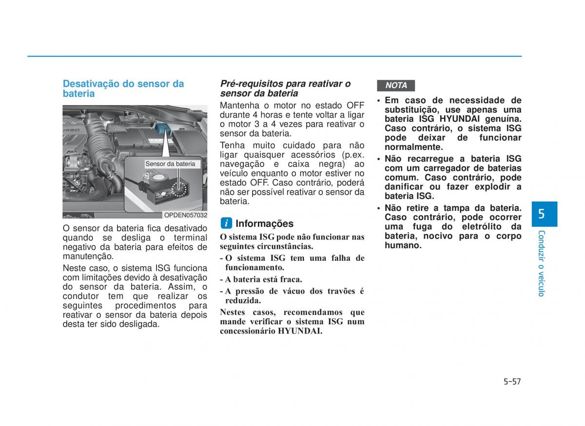 O sistema ISGpode não funcionarnas bateria, nocivo para o corpo