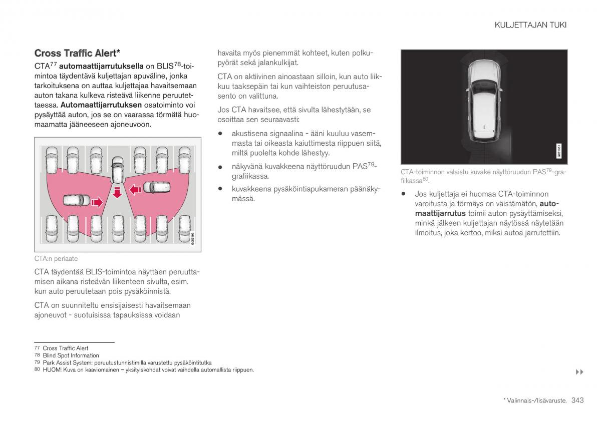 mintoa täydentävä kuljettajan apuväline, jonka CTA on aktiivinen ainoastaan silloin, kun auto liik-