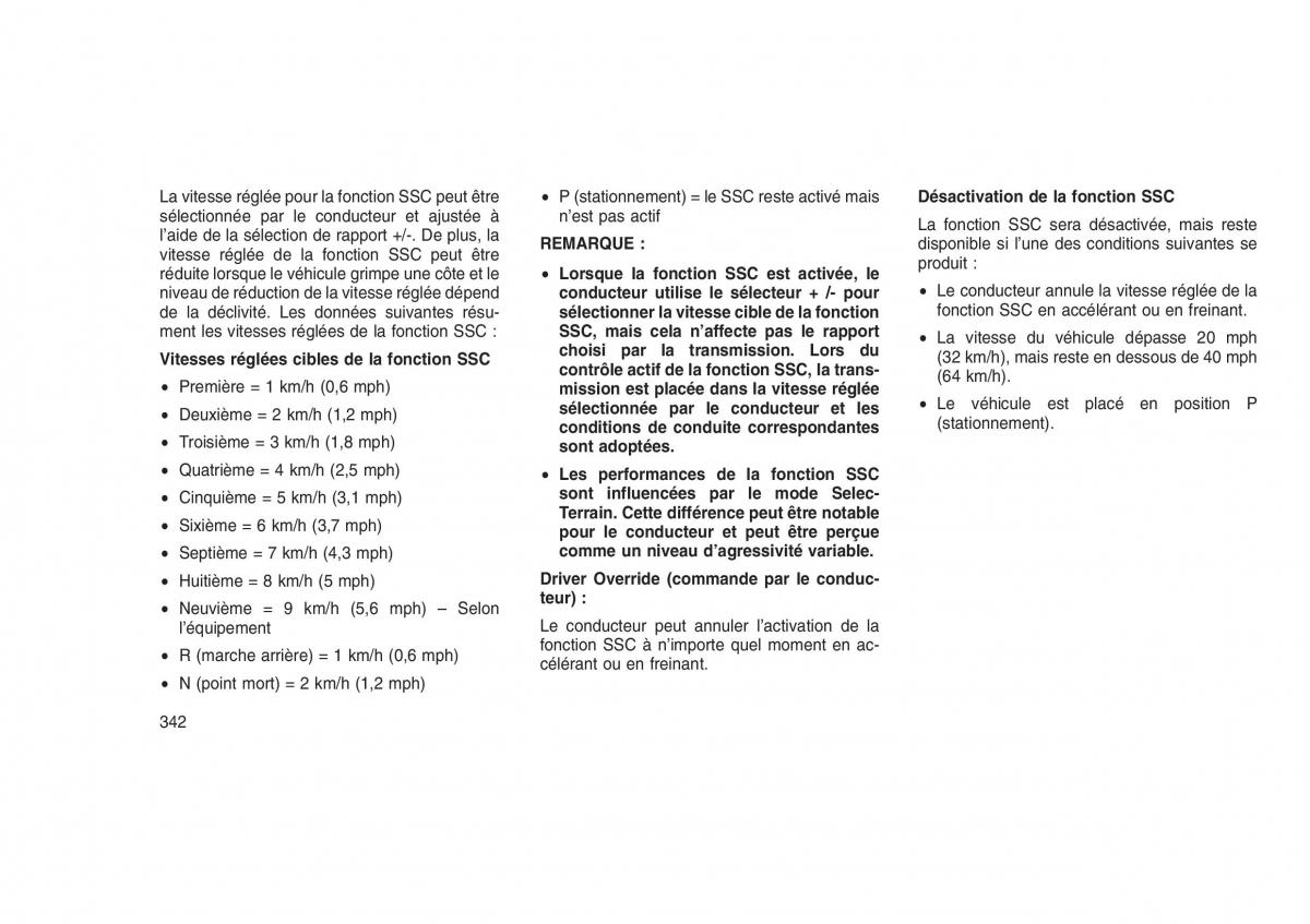 ment les vitesses réglées de la fonction SSC :SSC, mais cela n’affecte pas le rapport• La vitesse du véhicule dépasse 20 mph