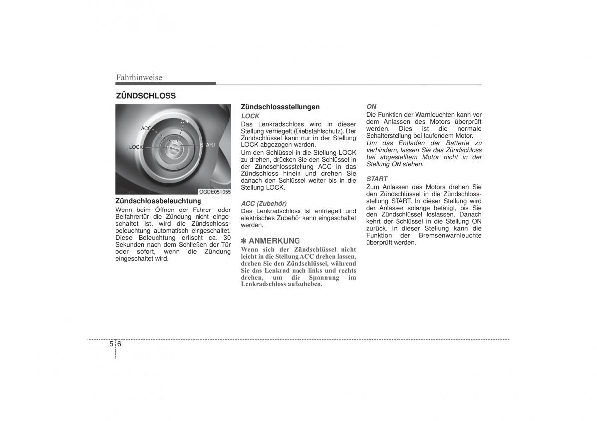 Zündschlossbeleuchtung ACC (Zubehör) stellung START. In dieser Stellung wird