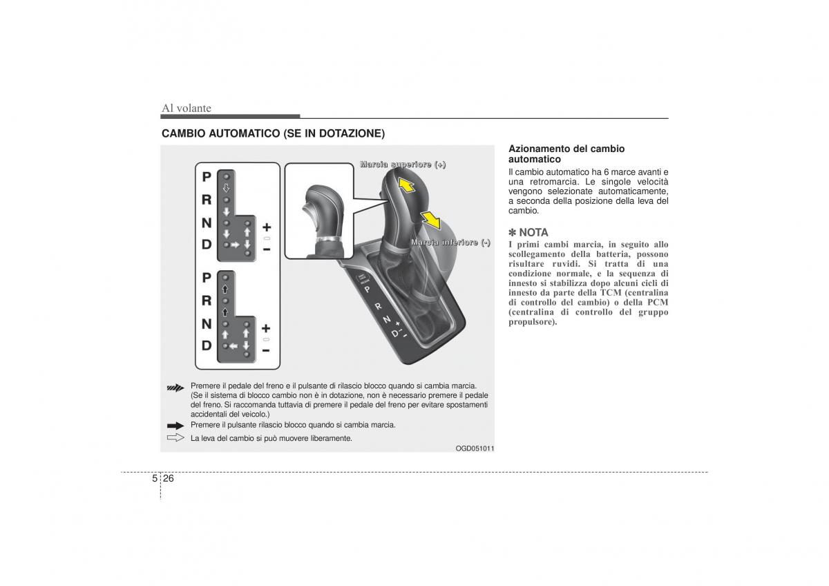 Premere il pedale del freno e il pulsante di rilascio blocco quando si cambia marcia.