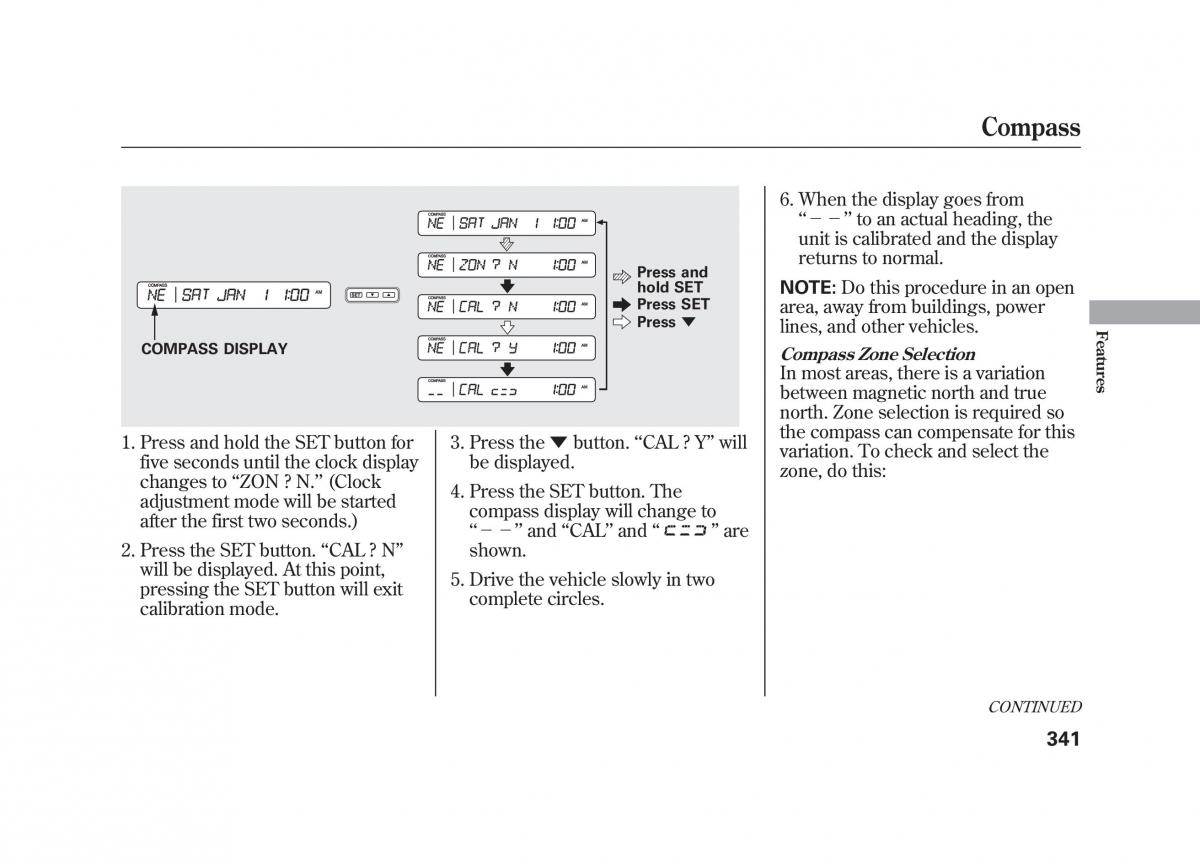 1. Press and hold the SET button for3. Press the ▼ button. ‘‘CAL ? Y’’ willthe compass can compensate for this
