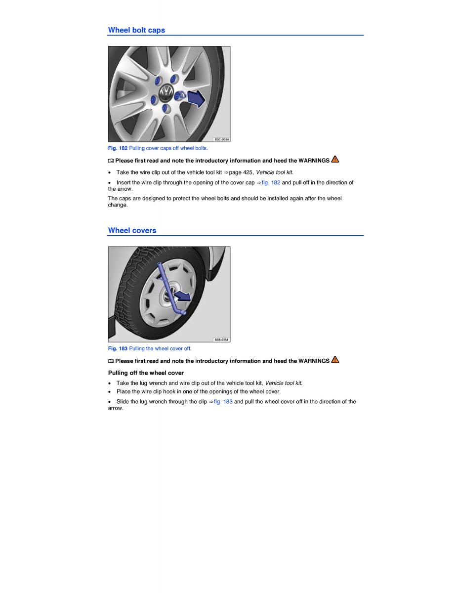 x Slide the lug wrench through the clip⇒ fig. 183 and pull the wheel cover off in the direction of the