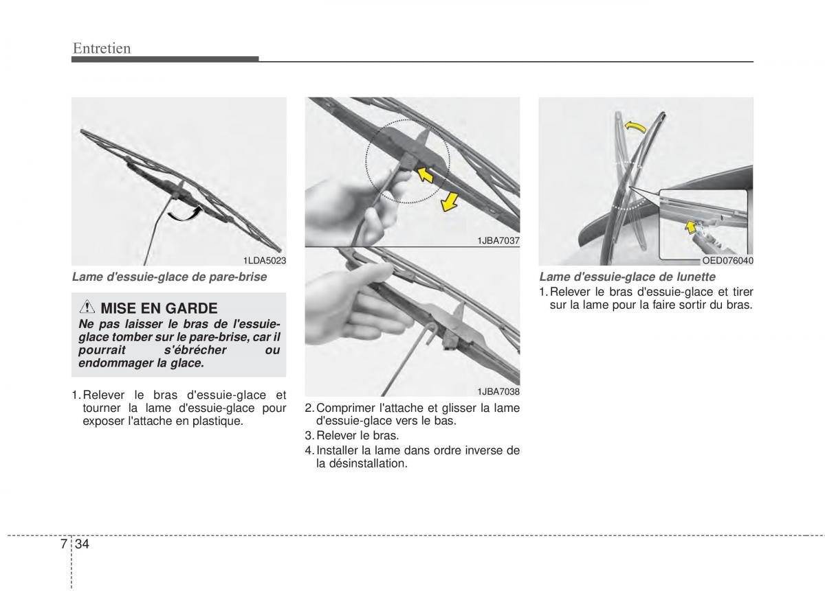 1.Relever le bras d'essuie-glace et