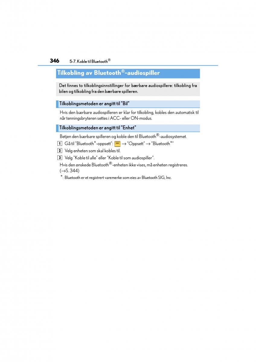 1 *-oppsett”: → ”Oppsett” → ”Bluetooth*”