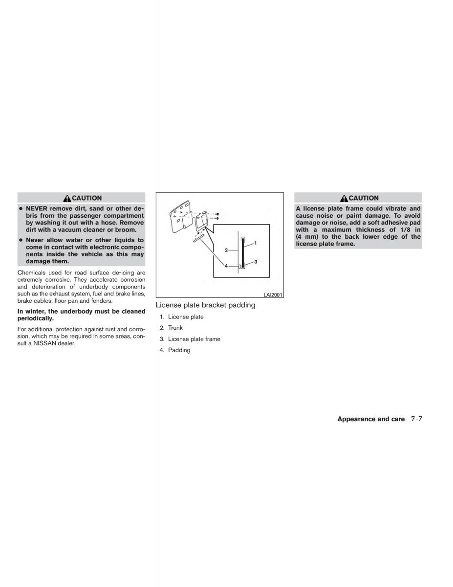 ● NEVER remove dirt, sand or other de- A license plate frame could vibrate and