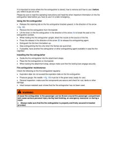 A fire extinguisher may be located in a holder in the footwell in front of or under the front passenger