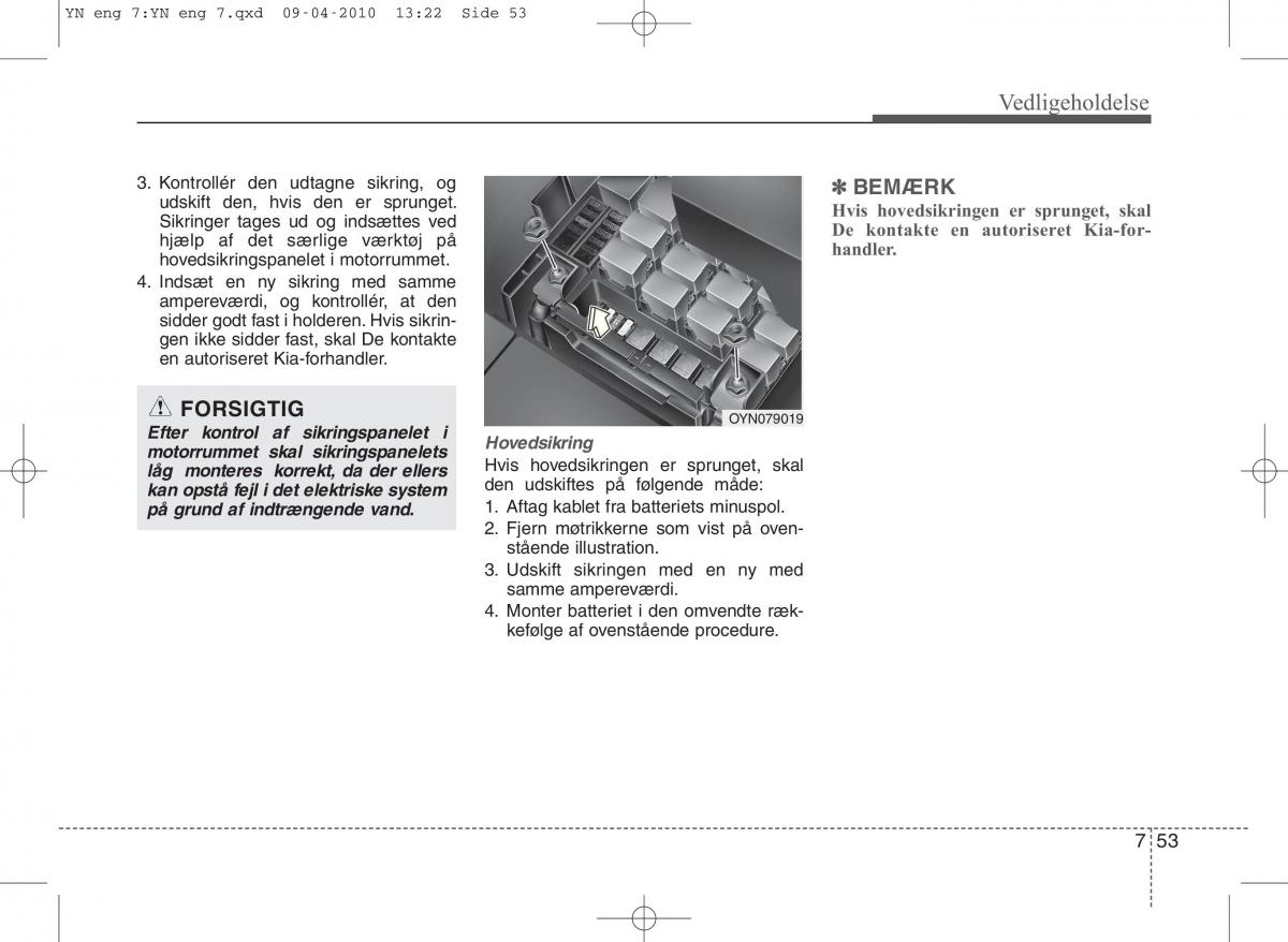 Sikringer tages ud og indsættes ved De kontakte en autoriseret Kia-for-