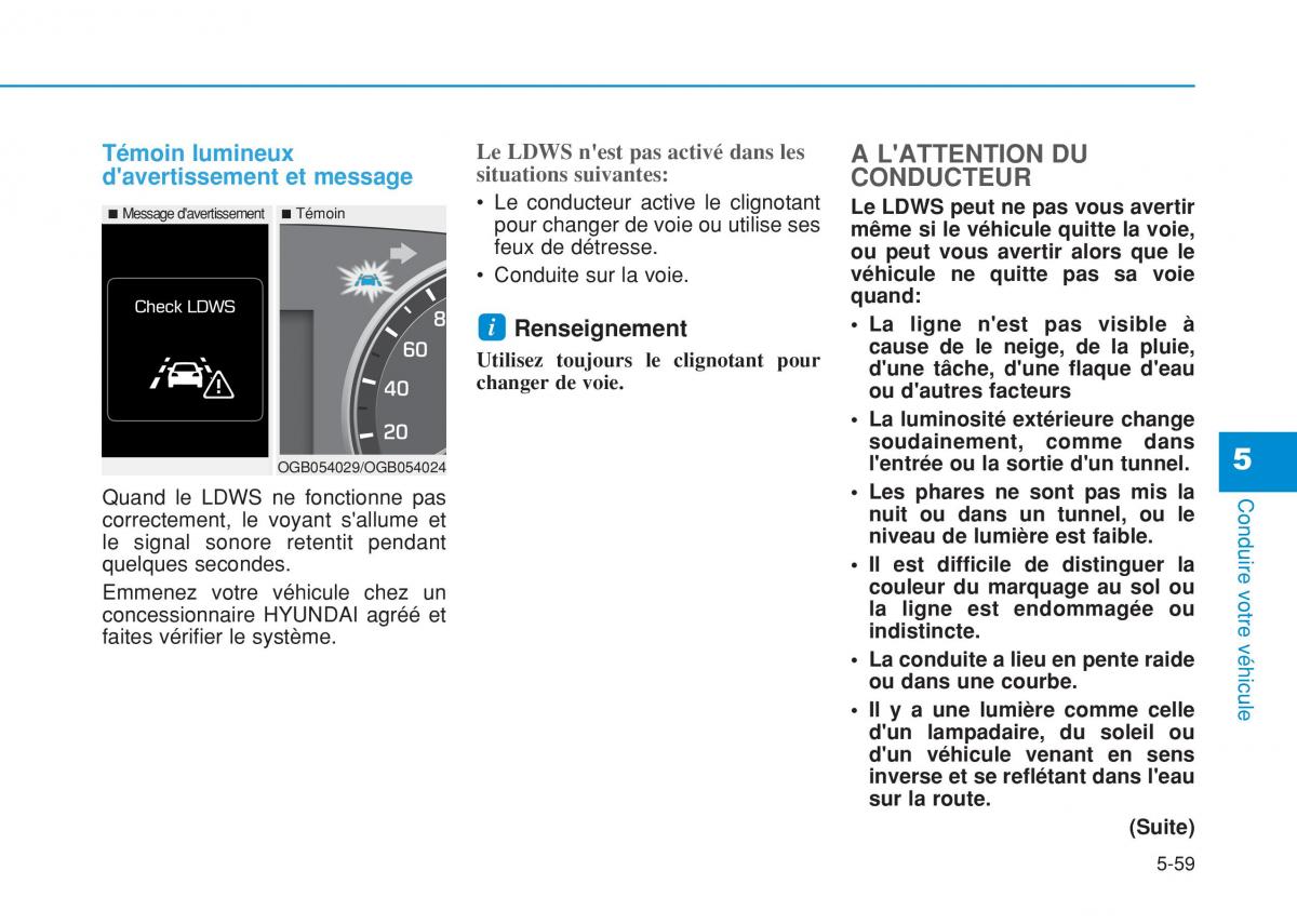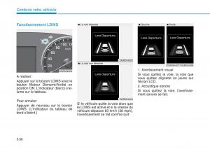 Message d'avertissementTémoin pour changer de voie ou utilise ses Le LDWS peut ne pas vous avertir