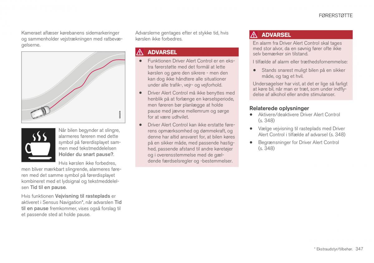 Driver Alert Control kan ikke erstatte føre-(s. 348)