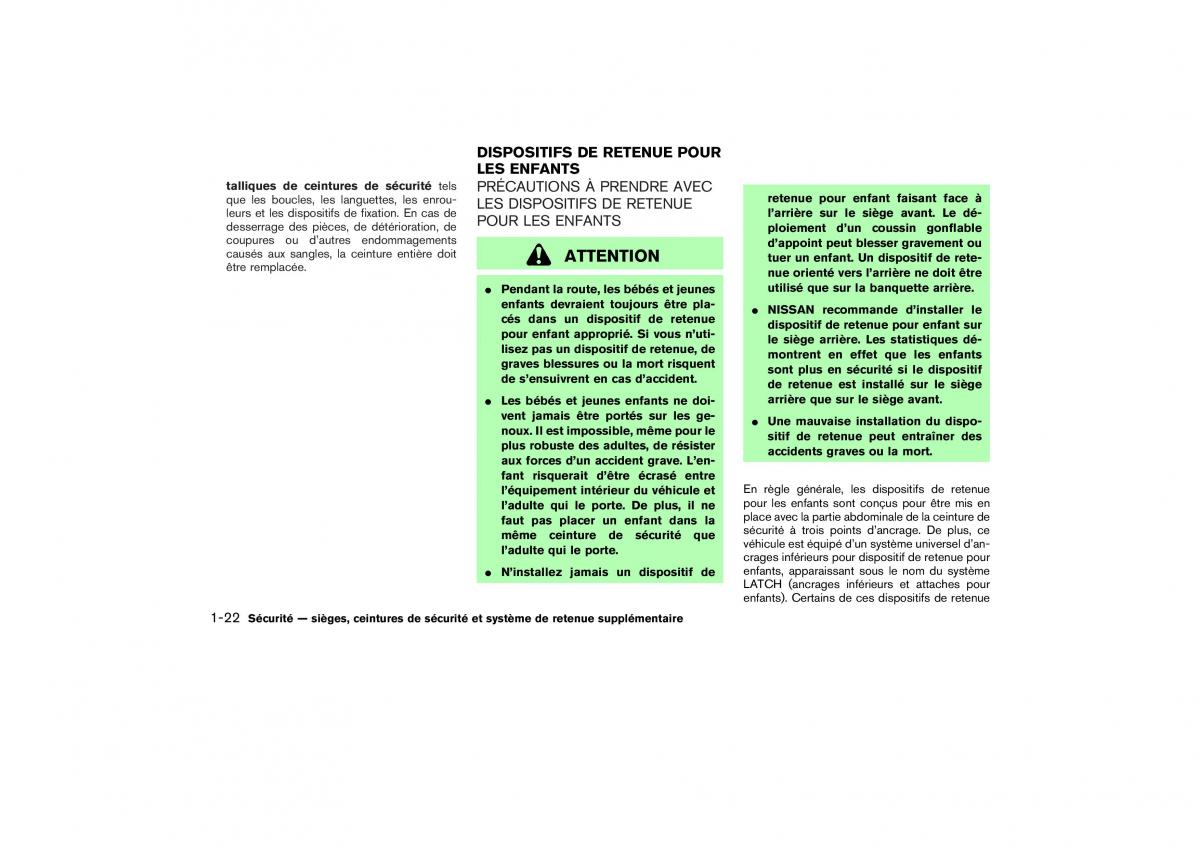 1-22 Sécurité — sièges, ceintures de sécurité et système de retenue supplémentaire