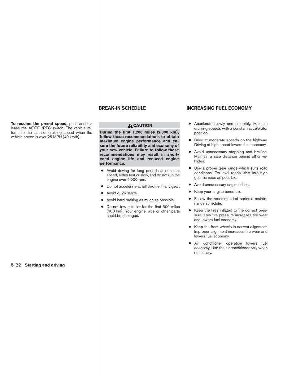 BREAK-INSCHEDULE INCREASINGFUELECONOMY