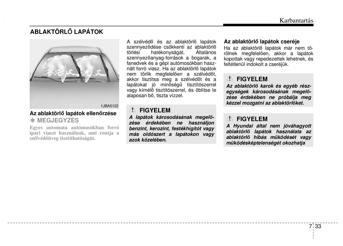 Az ablaktörlĘ lapátok ellenĘrzése FIGYELEM