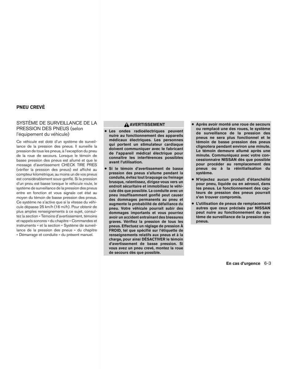 plus amples renseignements à ce sujet, consul-pneu. Votre véhicule pourrait subir desautres que ceux précisés par NISSAN