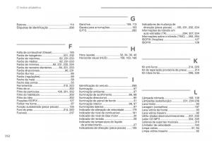 Etiquetas de identificação 268Gaveta para arrumações 103direcção (pisca-piscas) 135, 231, 232, 234