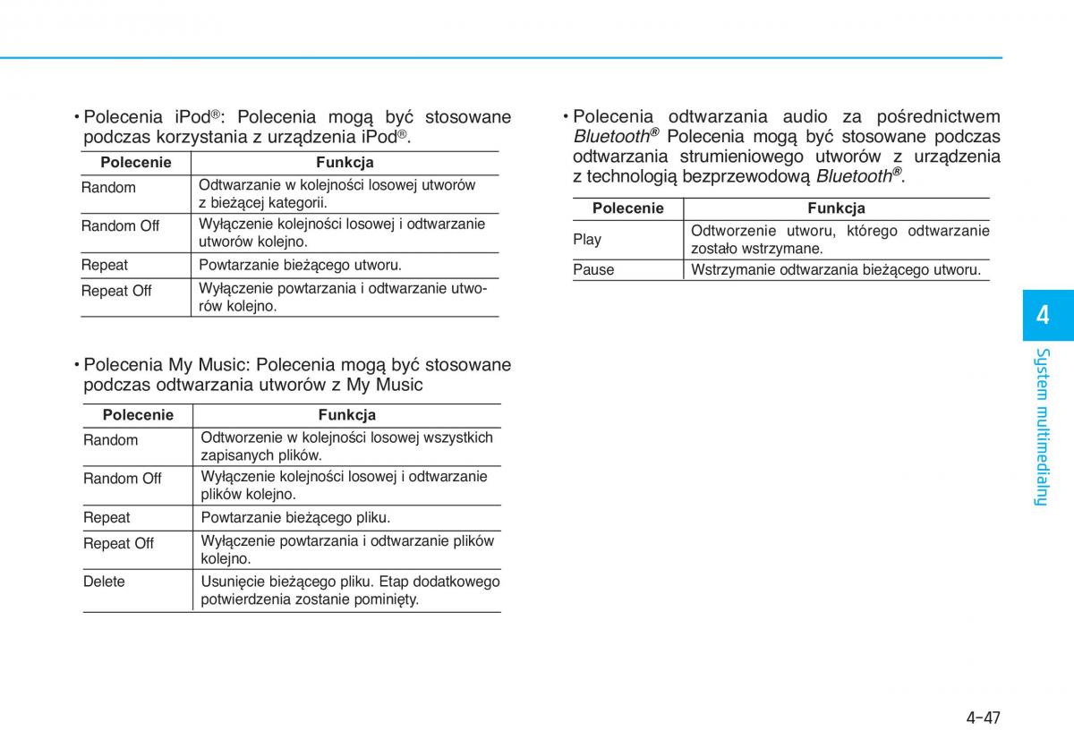 • Polecenia My Music: Polecenia mogą być stosowane s
