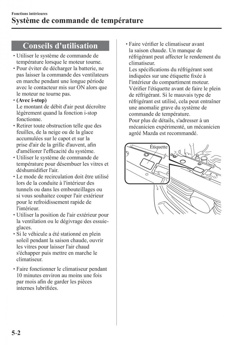 feuilles, de la neige ou de la glace agréé Mazda est recommandé.