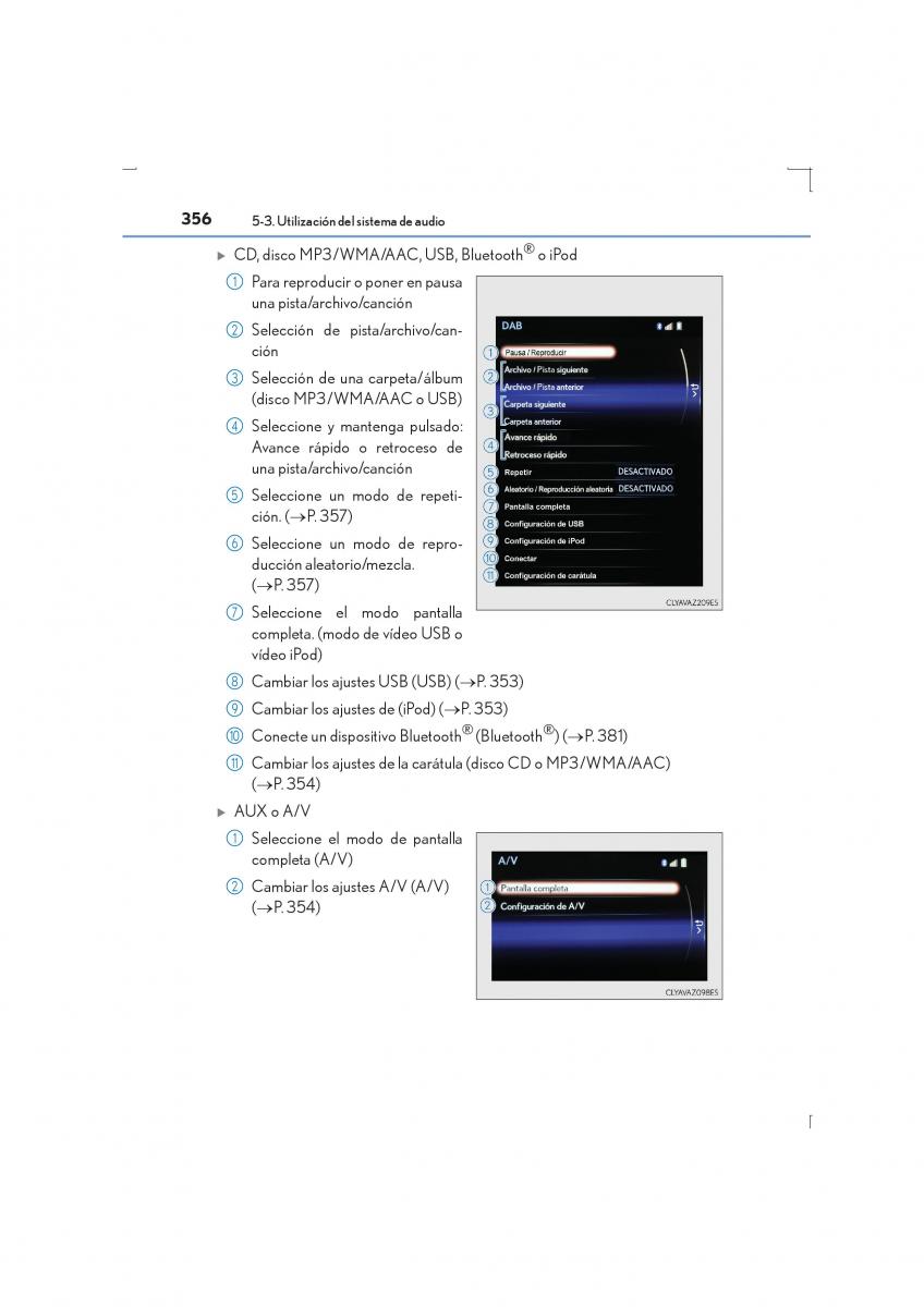 9 Cambiar los ajustes de (iPod) (→P. 353)