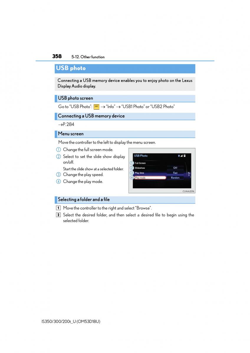 Go to “USB Photo”: “Info” “USB1 Photo” or “USB2 Photo”