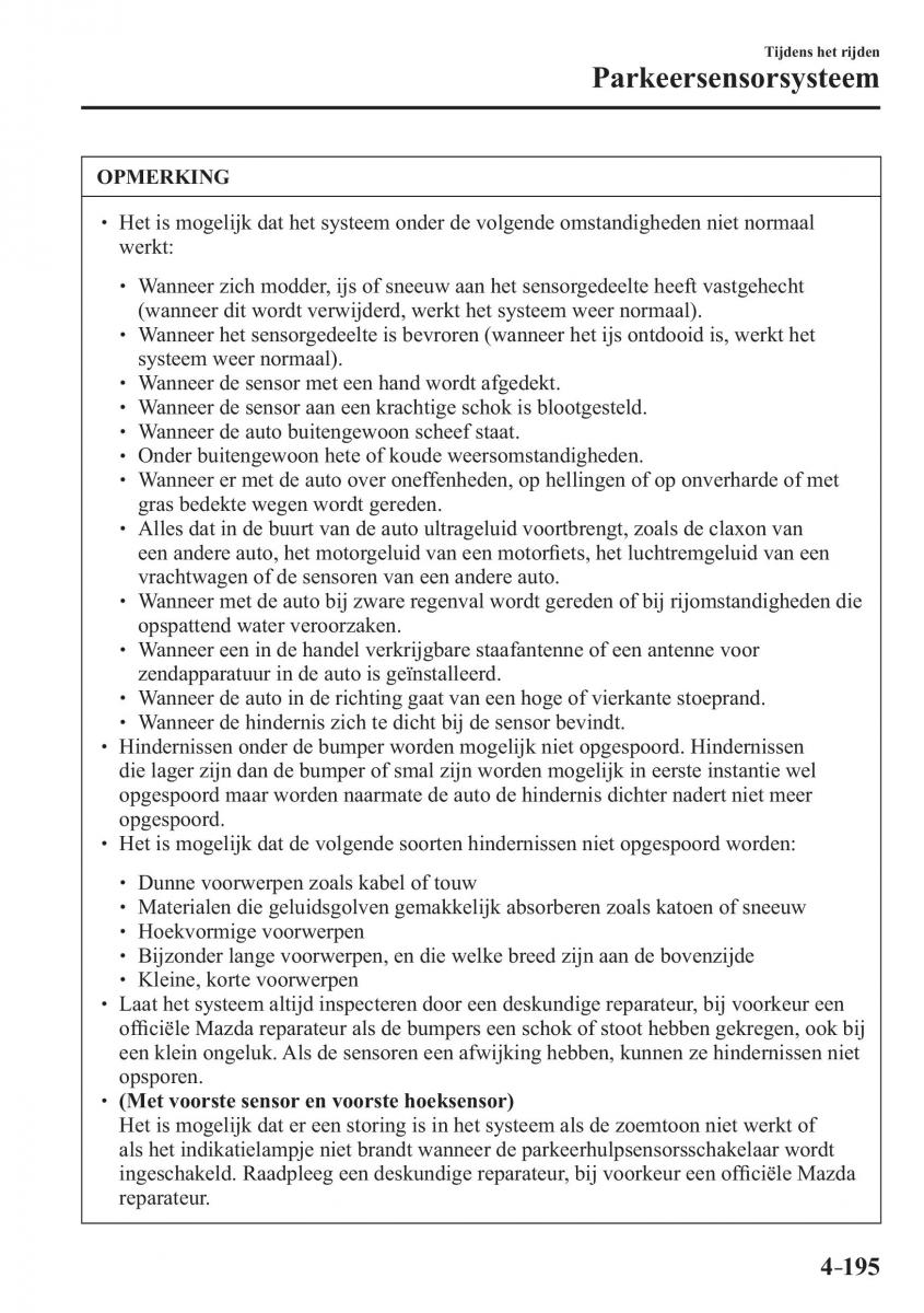 ingeschakeld. Raadpleeg een deskundige reparateur, bij voorkeur een offi ciële Mazda
