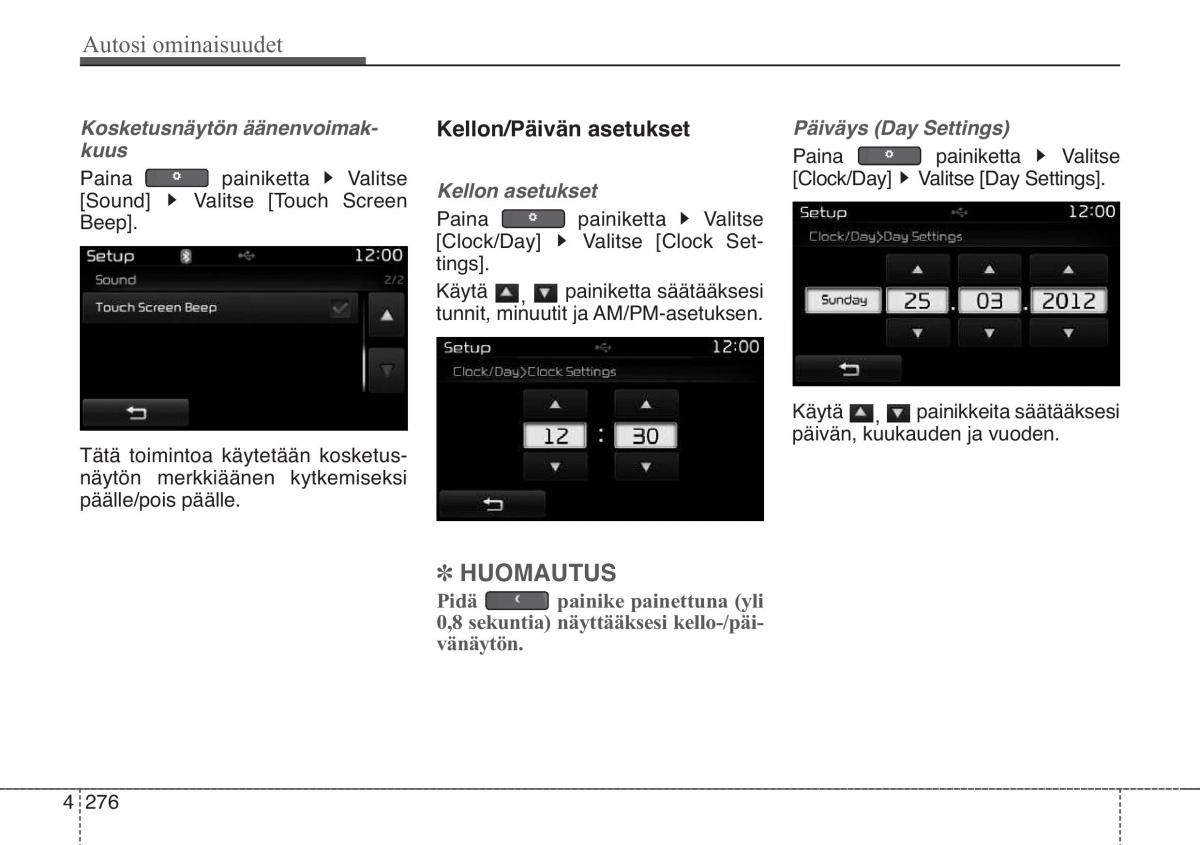 Kosketusnäytön äänenvoimak-Kellon/Päivän asetuksetPäiväys (Day Settings)
