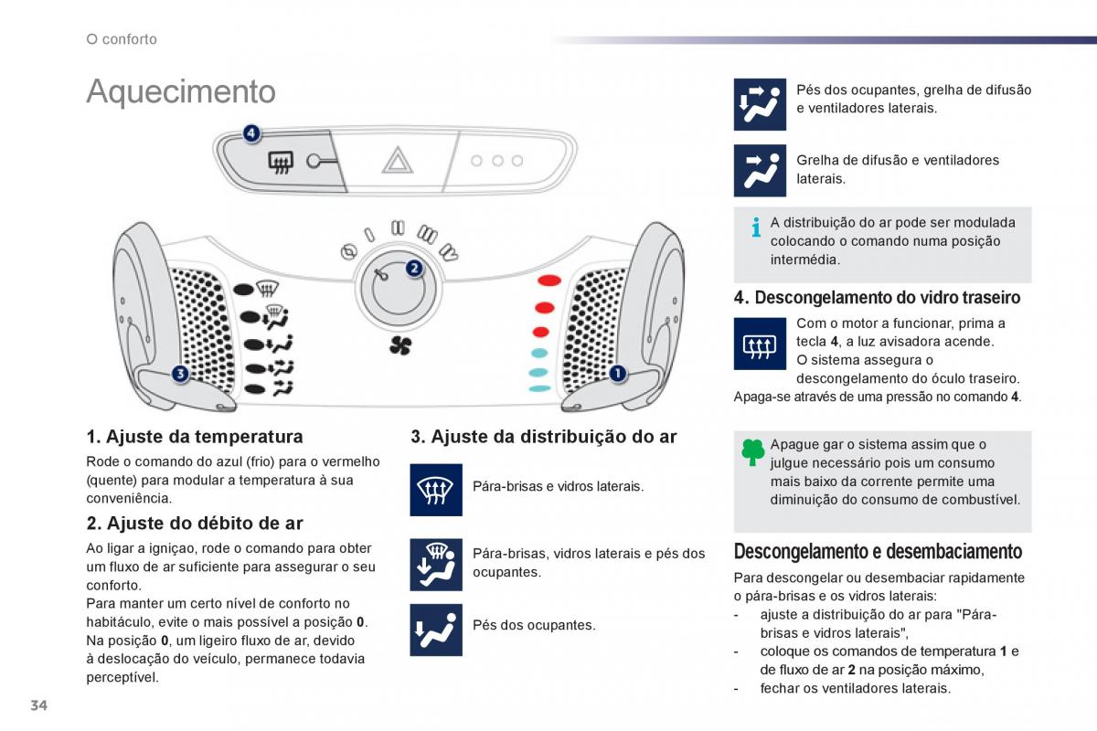 1. Ajuste da temperatura 3. Ajuste da distribuição do ar Apague gar o sistema assim que o