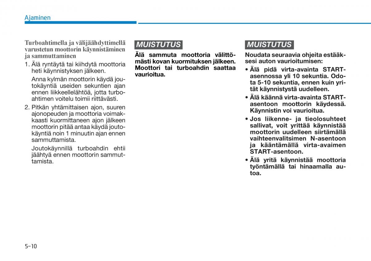 ennen liikkeellelähtöä, jotta turbo- tät käynnistystä uudelleen.