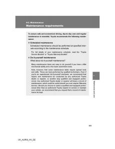 owners manual Toyota Auris Hybrid - year of production: 2007, 2008, 2009, 2010, 2011, 2012 - Toyota Auris Hybrid I 1 owners manual EN