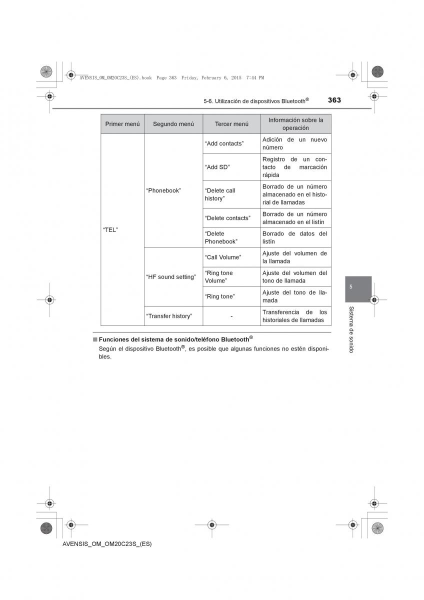 AVENSIS_OM_OM20C23S_(ES).book Page 363 Friday, February 6, 2015 7:44 PM